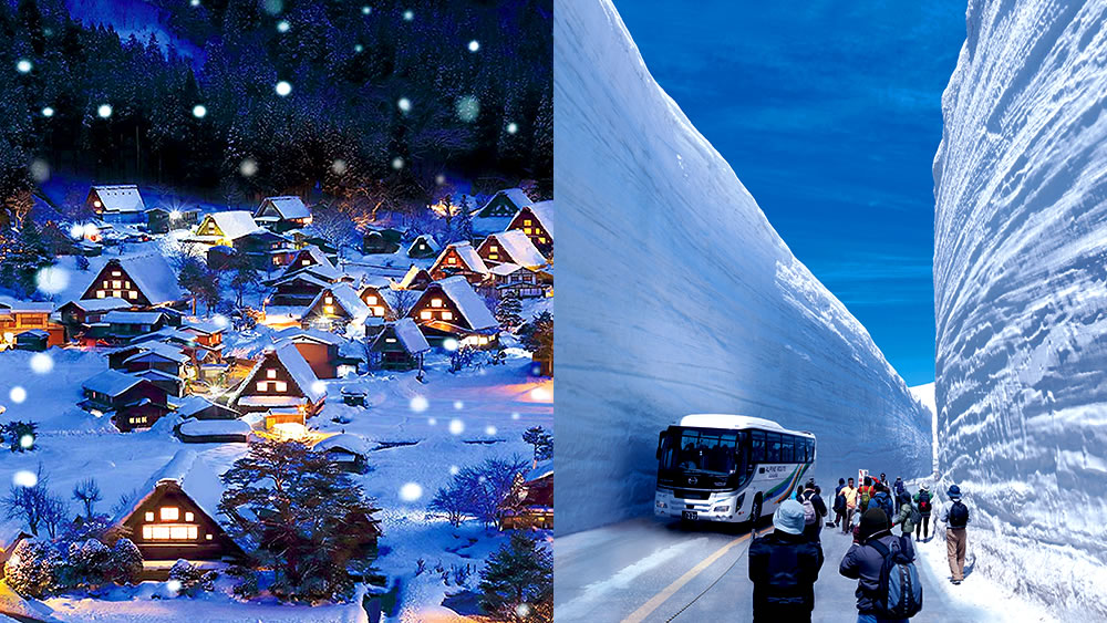 - 高山市内朝市、古い町並、陣屋観光と白川郷・五箇山ツアー